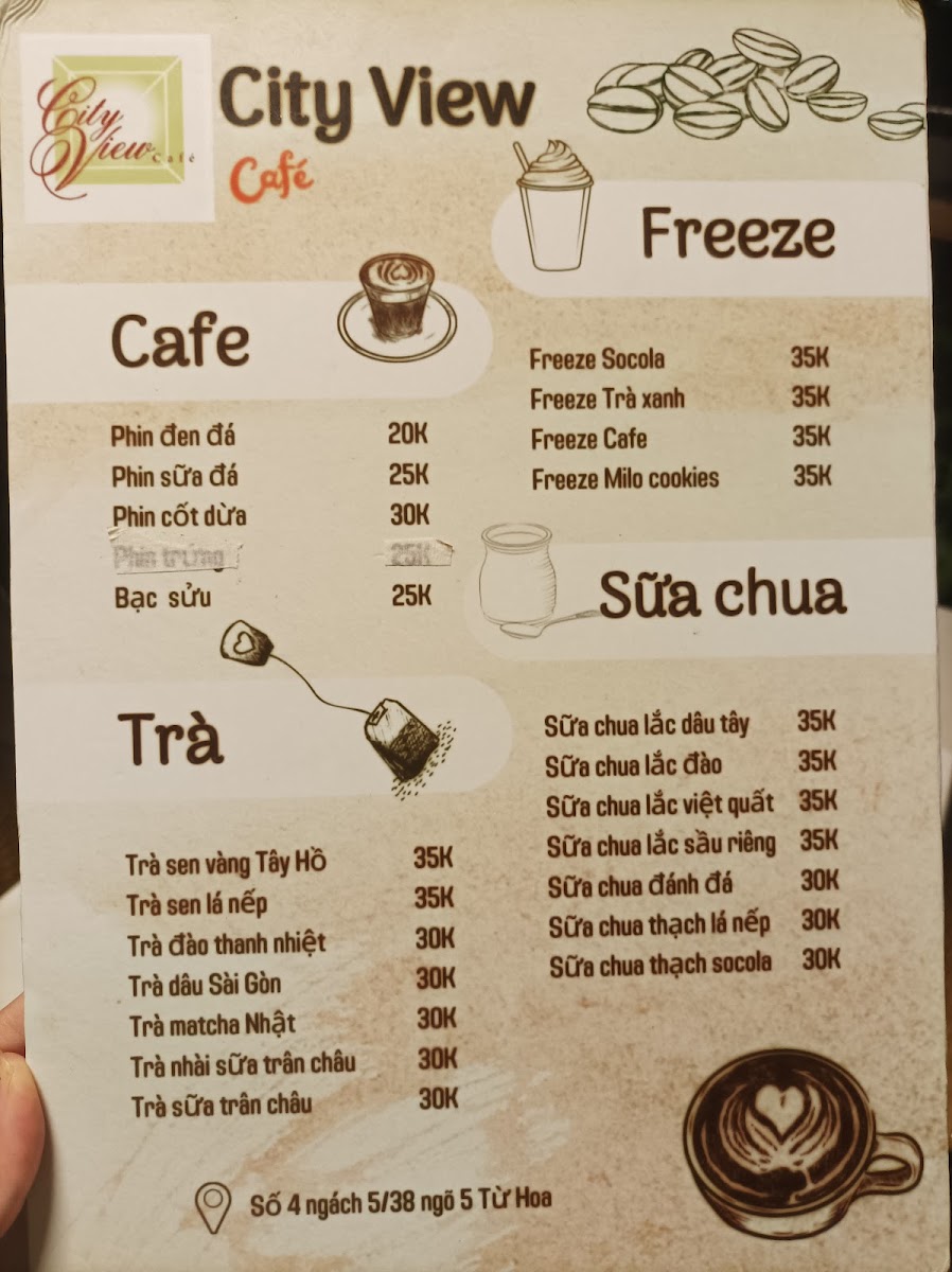 Welcome to City View Cafe, a charming escape nestled in the heart of Quảng An, Hà Nội. This delightful café effortlessly combines a serene atmosphere with vibrant Vietnamese culture, offering the perfect spot for a chill afternoon or an animated night out. Menu highlights focus on a fantastic selection of traditional Vietnamese desserts and refreshing drinks, including their renowned Vietnamese iced coffee. Customers rave about the stunning panoramic views, capturing the enchanting sights of the lake and bustling city, which elevate your dining experience to delightful heights.